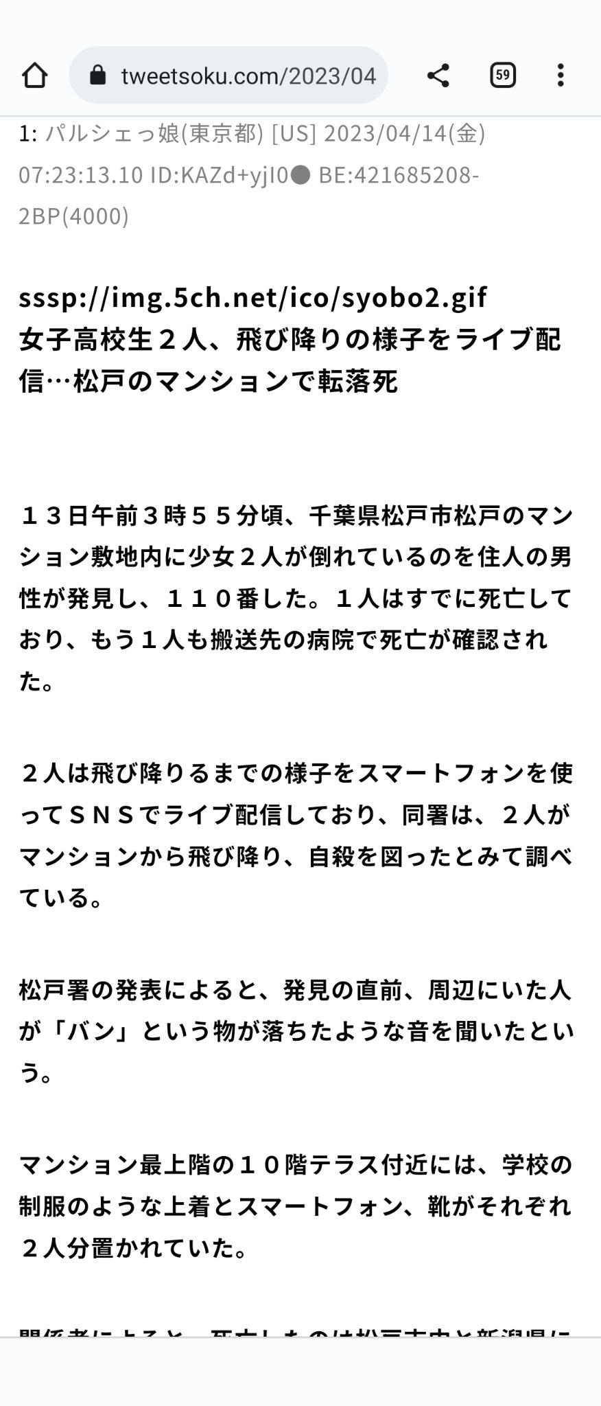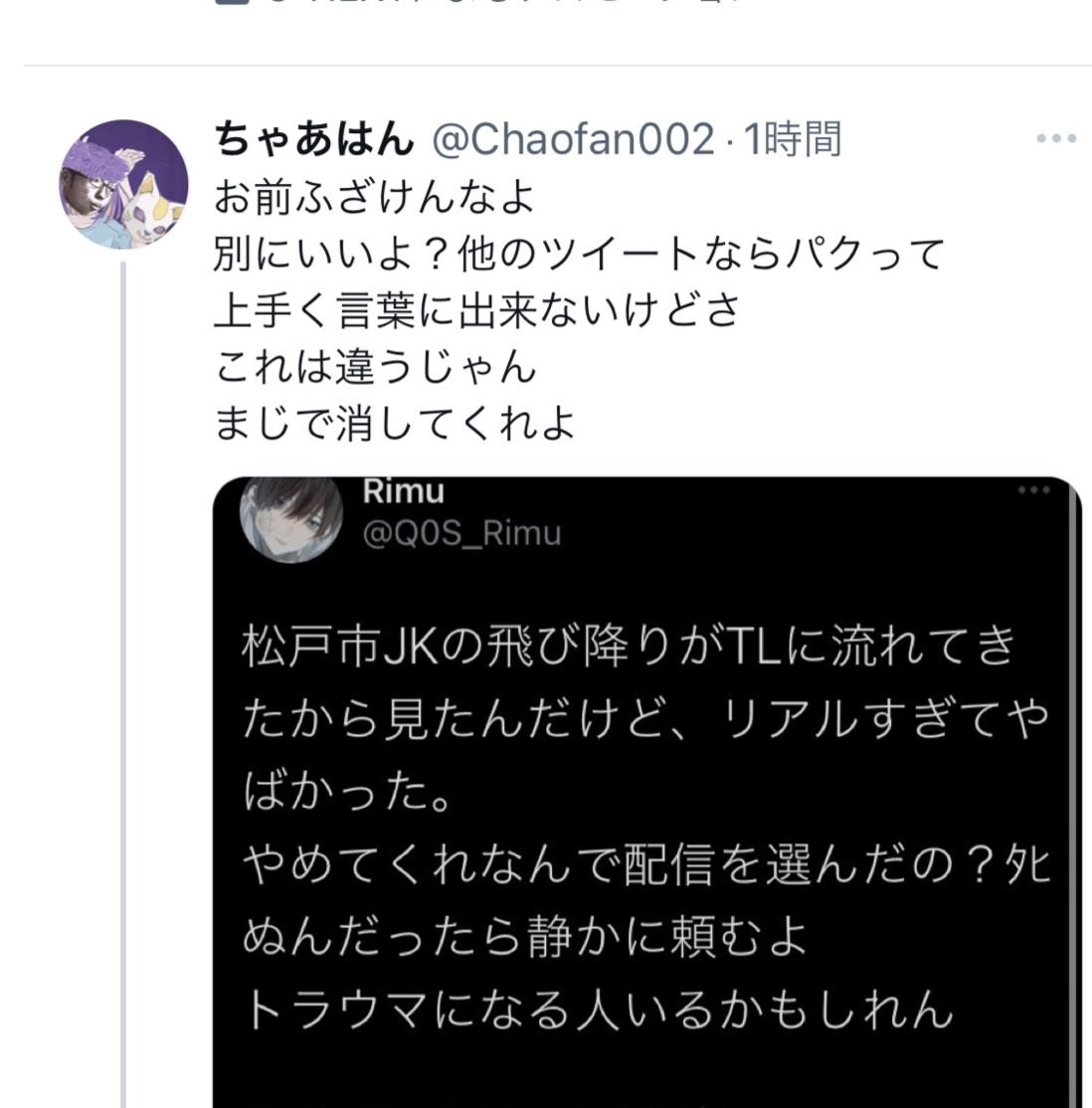 《松戸市・女子高生転落死》「お前なんか生まなければ良かった」と…悲劇の連鎖を止めるために必要なこと | 文春オンライン 飛び降り配信 twitter](https://i3.wp.com/bunshun.jp/mwimgs/2/2/1200wm/img_22e97d4758595512ae6c29bc7079bd5d184386.jpg?ssl=1)